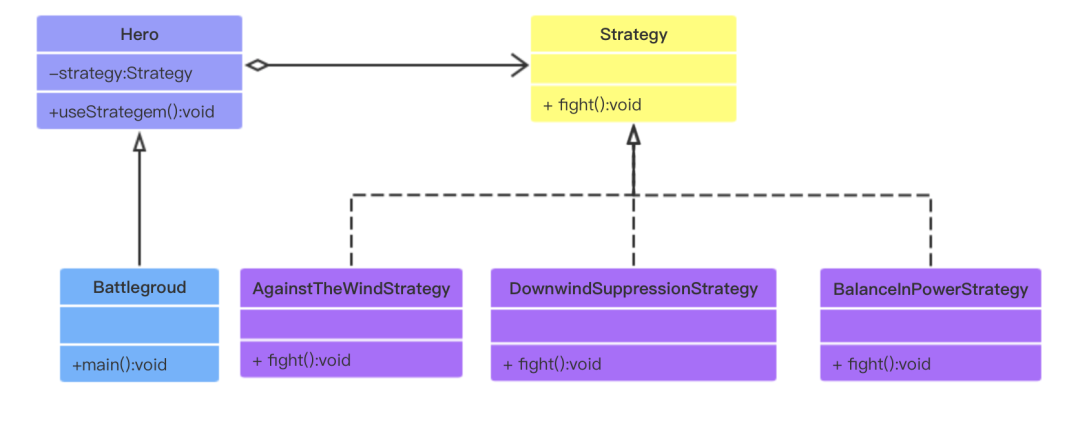 Hero hero = new Hero(new AgainstTheWindStrategy());