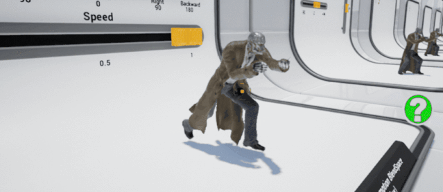 现在假如我们给他一点点移动速度(比如每秒0.1m),如果这时候他的动画时迈开步子疯狂地跑的话,就会发现动画与速度是不匹配的。同理,如果把动画调成走路的样子,而速度改为10m/秒,就会发现他一步还没迈出去就已经滑到对面墙上了,这就是我们平时所说的滑步现象(不过没这么夸张),也是很多游戏里面看起表现很差的原因。只有将速度与动画完全匹配,才能让游戏角色移动看起来非常自然。