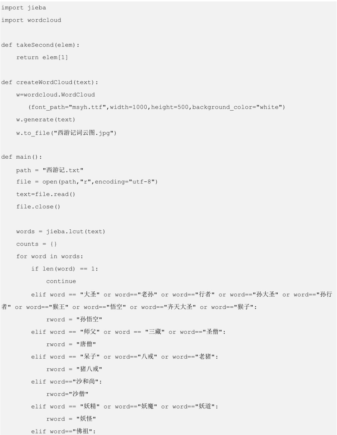 我们在西游记的分词代码中增加了生成词云图的功能,新增代码突出显示出来。