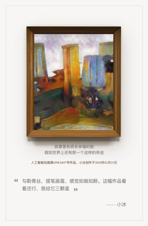 以及微软小冰2017年就出版了诗集和画册《阳光失了玻璃窗》。“快把光明的灯擎起来了,那里有美丽的天,问着村里的水流的声音,我的爱人在哪”——小冰在诗中这样写到。