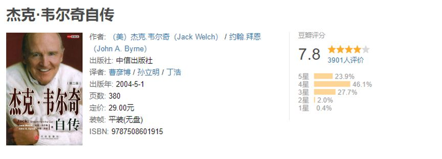 《杰克·韦尔奇自传》作者:杰克·韦尔奇/约翰·拜恩