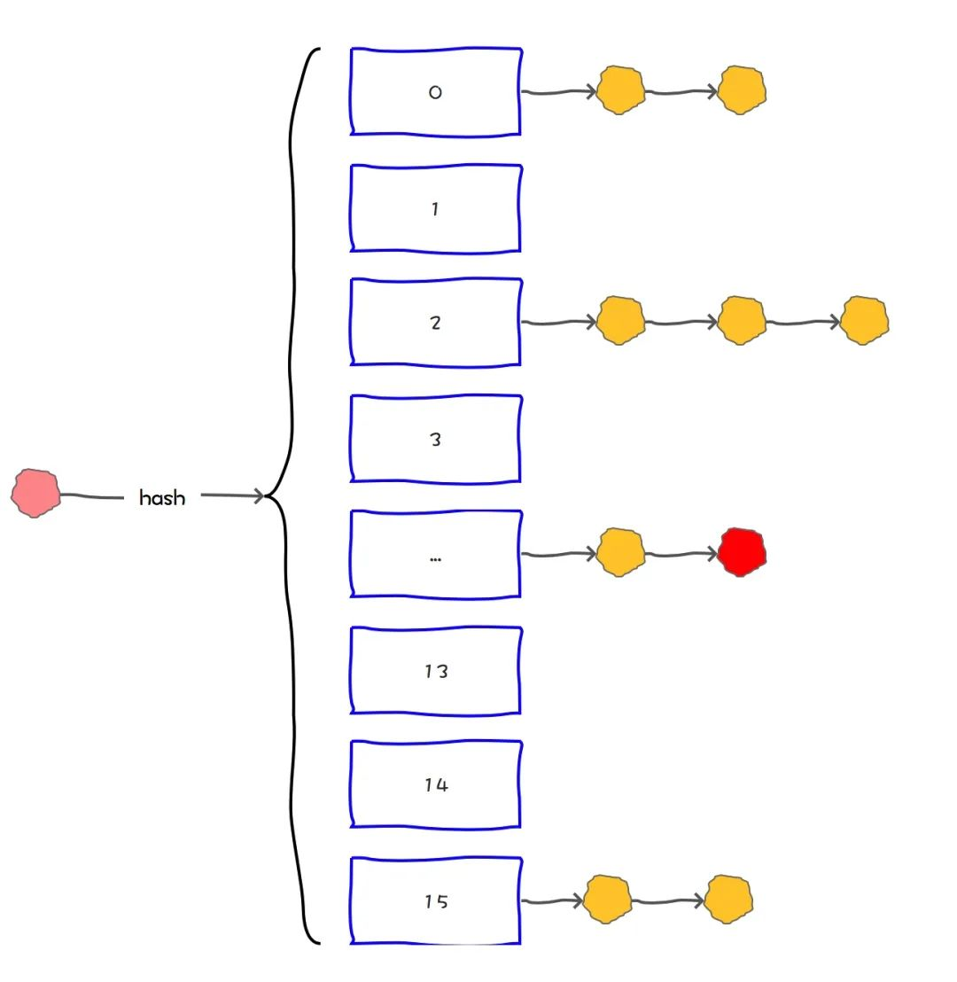 那么在HashMap中,最好的情况是这16个元素通过hash算法之后分别落到了16个不同的桶中,否则就必然发生哈希碰撞。而且随着元素越多,哈希碰撞的概率越大,查找速度也会越低。