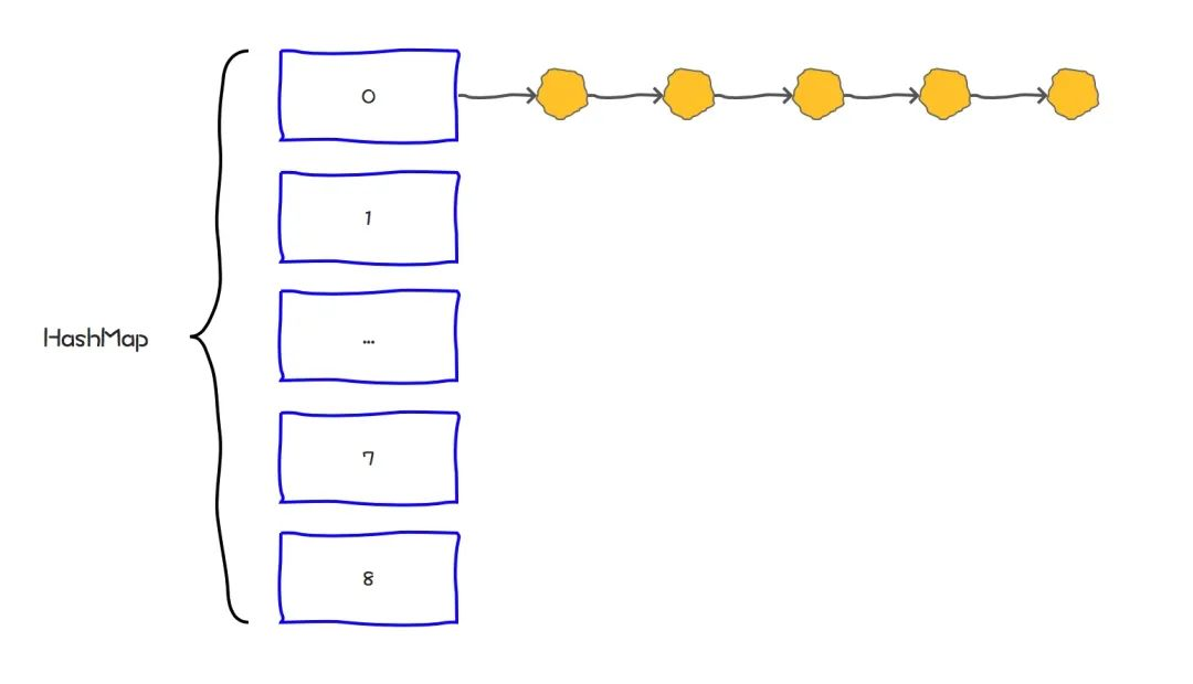 如果HashMap中哈希冲突概率高,那么HashMap就会退化成链表(不是真的退化,而是操作上像是直接操作链表),而我们知道,链表最大的缺点就是查询速度比较慢,他需要从表头开始逐一遍历。