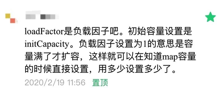 另外,这个值得设置,有些人会用错的,比如前几天我的《阿里巴巴Java开发手册建议创建HashMap时设置初始化容量,但是多少合适呢?》这篇文章中,就有读者这样回复: