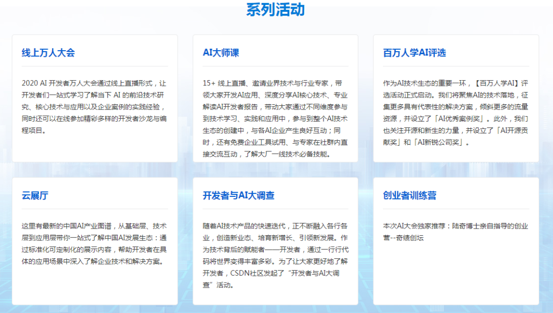 过去 20 年间,优快云 已成为中国开发者交流和传播 AI 的重要平台。站在新十年的开端,优快云 特推出“百万人学 AI”活动,通过开发者大调查、采访、直播、大会等形式,覆盖 689 万 AI 技术相关开发者,影响 10 万 AI 应用开发者,并精准触达上万名 AI 开发者。目前已经有 5000 多名开发者参与了 AI 开发者大调查,近万名开发者报名了 AI 开发者大会,超 10 万余人次参与了 AI 大师课。