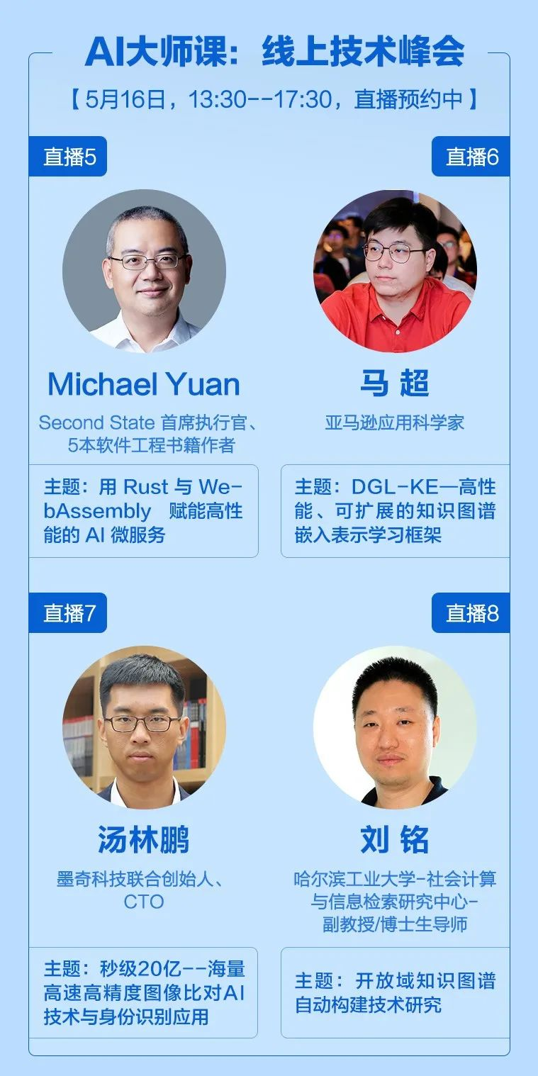 大会前期还有 15+ 线上直播前瞻活动,通过”内容分享+线上实操+互动答疑“等形式,带领大家完成人生中的第一个AI应用,扫描海报二维码立即解锁福利!