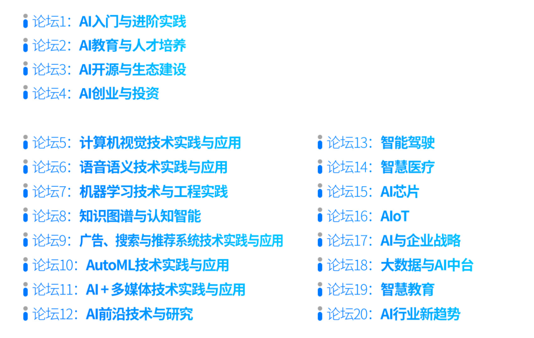 20大论坛,从 AI 入门到技术干货、应用案例,一应俱全