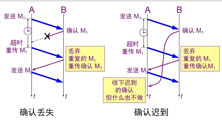 确认丢失和确认迟到机制: