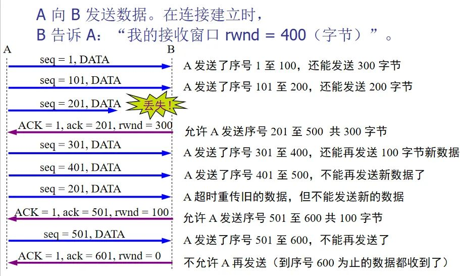 A的发送窗口是由B的接受窗口长度决定的;