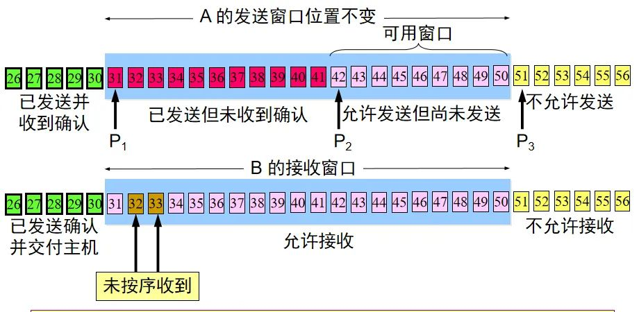 P3 – P2 = 允许发送但尚未发送的字节数(又称为可用窗口)。