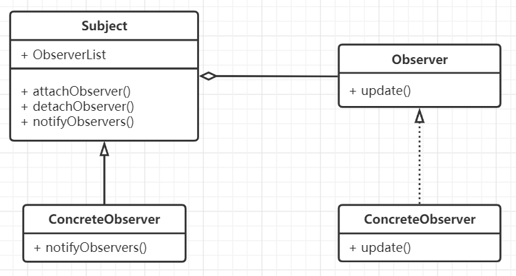 Subject类的成员OberverList,存储着已注册的观察者,当事件发生时,会通知列表中的所有观察者。需要注意的是,OberverList所依赖的是抽象的Observer接口,这样就避免了观察者与被观察者的紧耦合。