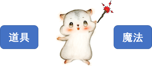 在一个小游戏中,包含一个简单的操作界面,界面上有两个按钮:道具和魔法。