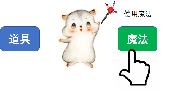 如果点击“道具”按钮,游戏里的主角会使用道具;如果点击“魔法”按钮,游戏里的主角会使用魔法。