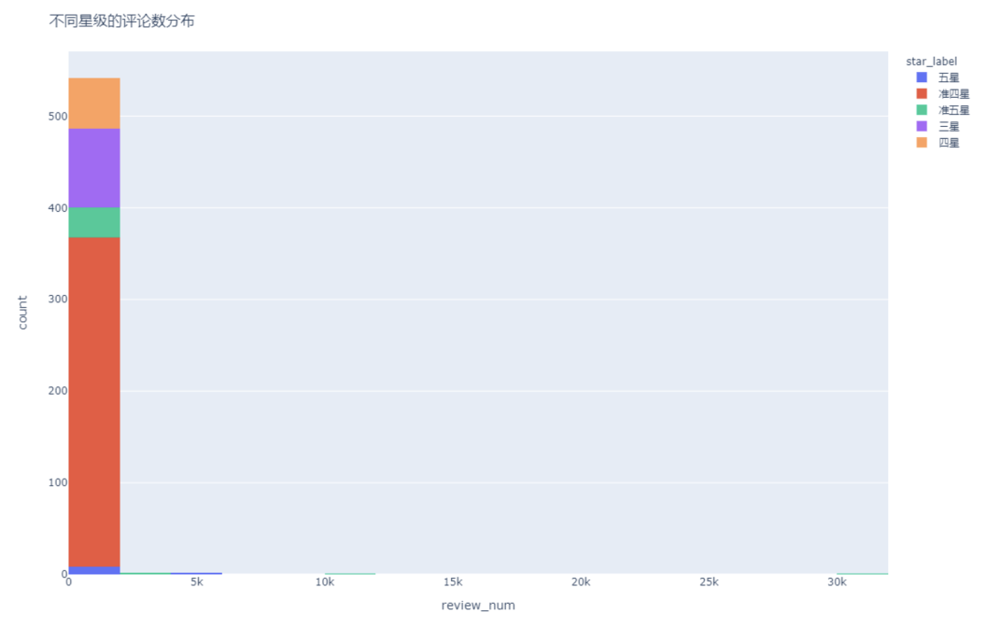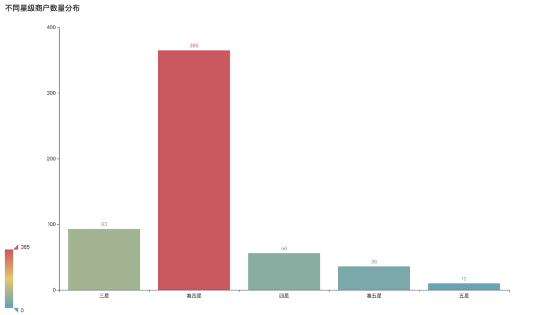 准四星商户最多,占比高达65%,超过四星以上的商户占比18%,其中五星商户数量最少,仅有10家。