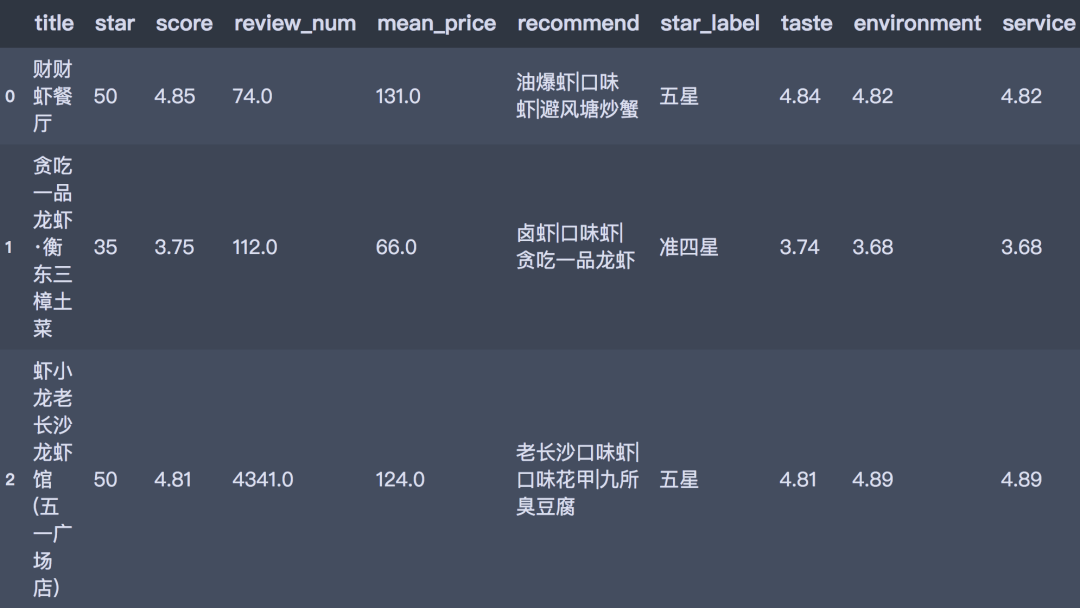df = pd.read_excel('../data/长沙小龙虾数据.xlsx')