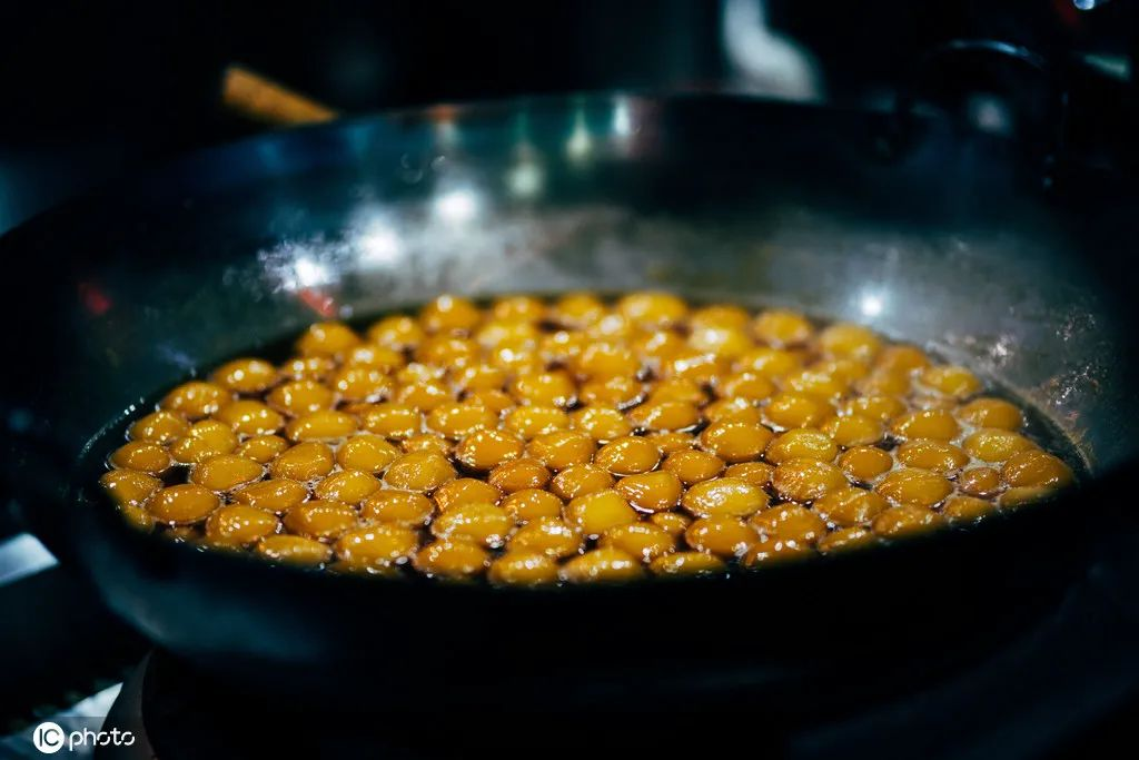 还有香甜软糯的糖油粑粑,炸至金黄的糯米,外面裹着糖浆。