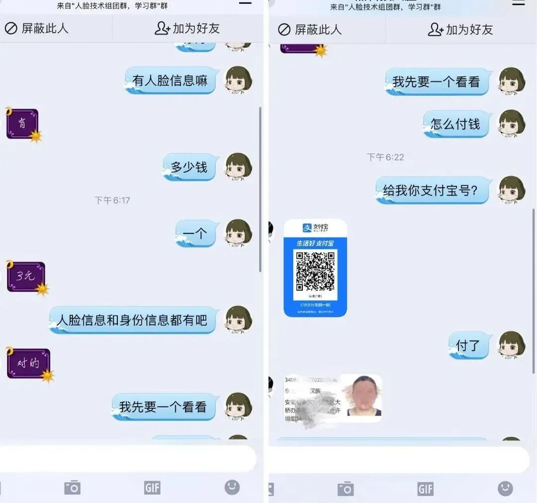 前不久媒体曝光的黑产从业者更是在淘宝、闲鱼上以人脸数据0.5元一份、“照片活化”网络工具及教程35元一套在售卖,“要的话五毛一张打包带走,总共两万套,不议价。”有卖家透露,自己所售卖的人脸信息来自一些网贷和招聘平台。