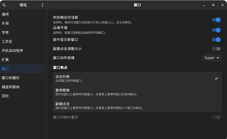 这个功能在 gnome-tweak-tool 的窗口中开启,不然每次开启终端都会跑到右上角的感觉