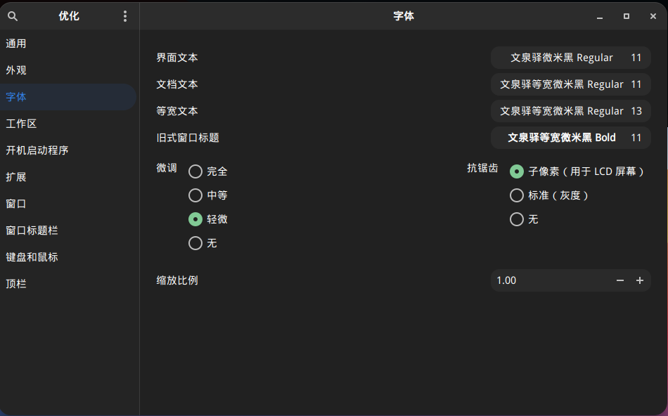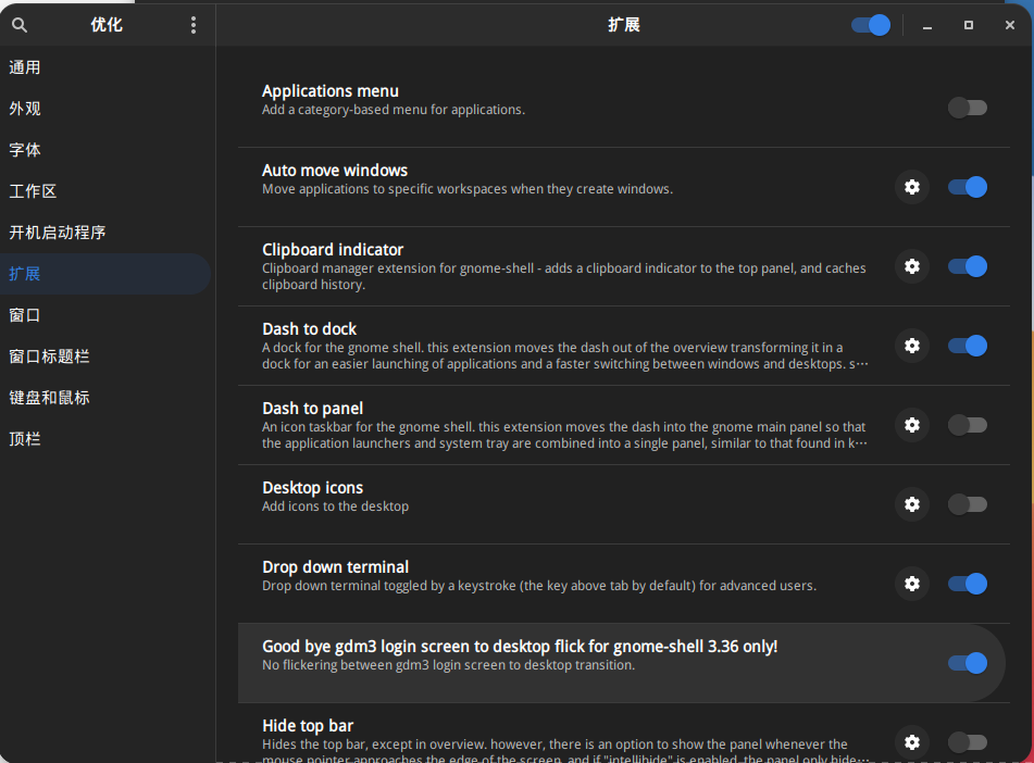 sudo apt-get install gnome-tweak-tool #优化系统配置