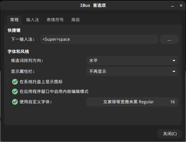 默认ibus 的字体非常小,我们调整字体大小,我们可以执行 ibus-setup 然后配置字体大小