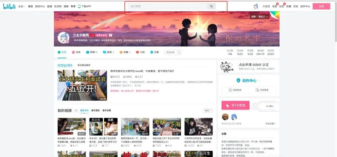 就比如我最近在 B 站看了《龙王赘婿》相关的视频,我的默认搜索推荐就出现了《画网赘婿》的默认搜索推荐,这就是根据近期热点和你个人喜好算出来的,大家可以进去刷新试试。