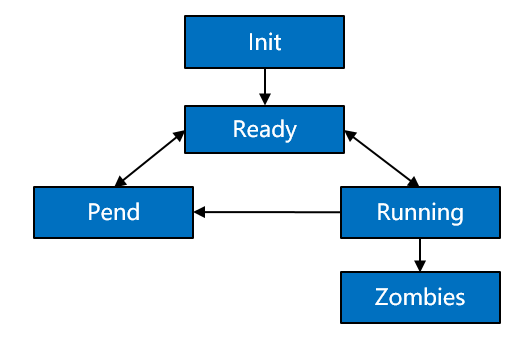 进程创建或 fork 时,拿到该进程控制块后进入 Init 状态,处于进程初始化阶段,当进程初始化完成将进程插入调度队列,此时进程进入就绪状态。