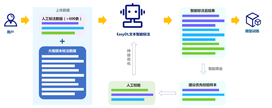 目前,EasyDL已预置了领先的预训练模型ERNIE2.0,并配套了多种NLP经典算法网络,支持了文本分类、短文本匹配和序列标注等典型文本处理任务。