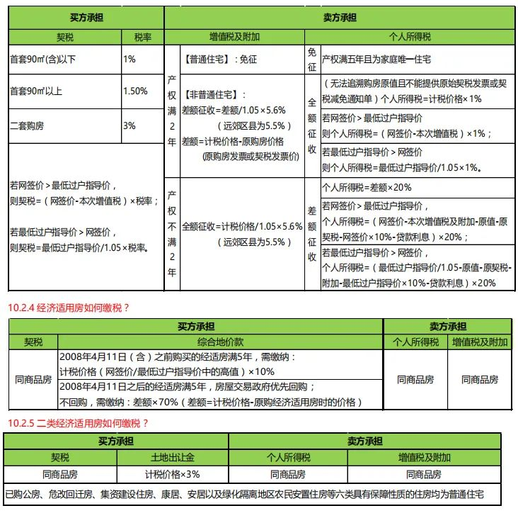 个税、增值税、契税,如果所购房是经济适用房的话,还有另外的高额的综合地价款或土地出让金。这个就相对很复杂了,借用网上的这个图: