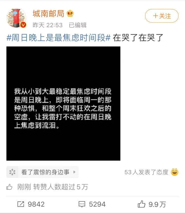 近日的热搜#周日晚上是最焦虑时段#中,大家纷纷表示:虽然周一确实是“忙day”,但周日晚上想到第二天要上班的自己,才是真正的“生不如死”。