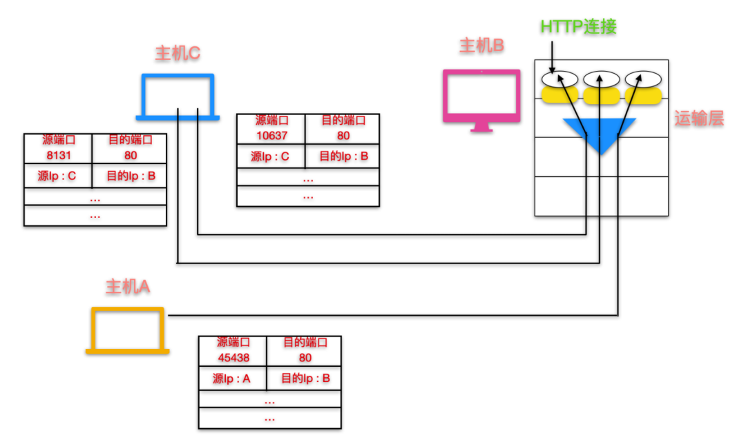 举个例子反驳一下cxuan,假如到达服务器的两条数据都是由80端口发出的你该如何区分呢?或者说到达服务器的两条数据端口一样,协议不同,该如何区分呢?