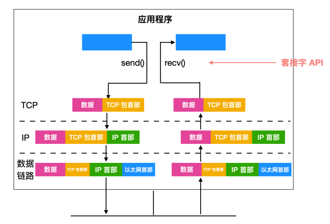 在TCP或者UDP发送具体的报文信息前,需要先经过一扇 门,这个门就是套接字(socket),套接字向上连接着应用层,向下连接着网络层。在操作系统中,操作系统分别为应用和硬件提供了接口(Application Programming Interface)。而在计算机网络中,套接字同样是一种接口,它也是有接口API 的。
