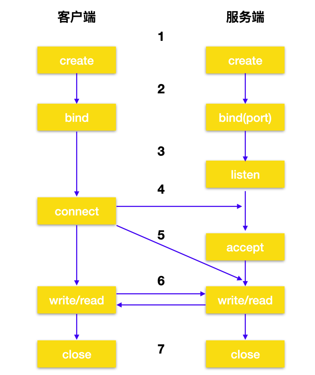 在计算机网络中,要想实现通信,必须至少需要两个端系统,至少需要一对两个套接字才行。下面是套接字的通信过程。