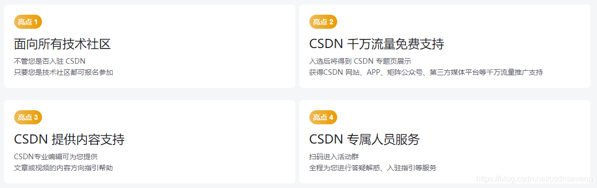 报名入选的技术社区,需要提供每一个“社区之星”(社区核心贡献者)的成长故事文章/视频,内容同时需更新在优快云,并提供对应链接给 优快云