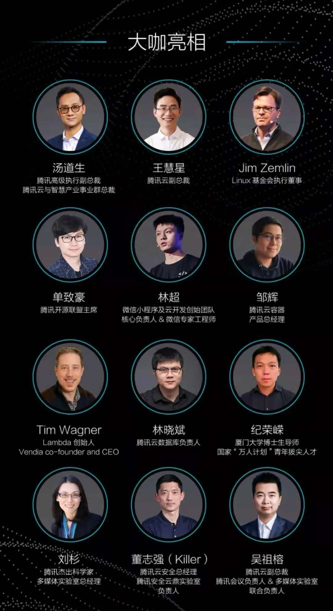 届时在主论坛,腾讯高级执行副总裁、腾讯云与智慧产业事业群总裁汤道生、腾讯云副总裁王慧星、Linux基金会执行董事Jim Zemlin 、AWS Lambda 创始人&前总经理Tim Wagner,厦门大学博士生导师、国家“万人计划”青年拔尖人才纪荣嵘,腾讯杰出科学家、多媒体实验室总经理刘杉,腾讯云副总裁、腾讯会议负责人&多媒体实验室联合负责人吴祖榕,腾讯云安全总经理、腾讯安全云鼎实验室负责人董志强,腾讯云容器产品总经理邹辉、腾讯云数据库负责人林晓斌,以及微信小程序及云开发创始团队核心负责人、微信专家工程师林超,腾讯开源联盟主席单致豪等众多专家、学者都将亲临现场参与分享。