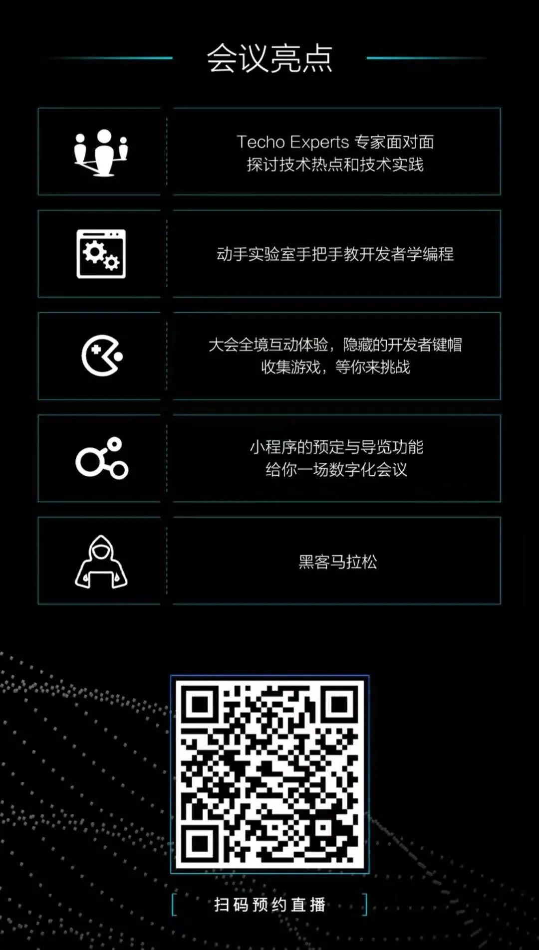 作为一个专注于前沿技术研讨的非商业大会,Techo Park开发者大会致力于为全球开发者搭建一个开放、中立、活跃的技术交流平台。通过最纯粹的技术分享、最干货的应用实践,和最前沿的技术思考为中国以及全球云计算爱好者、从业者、开发者提供最具参考价值的创新分享。