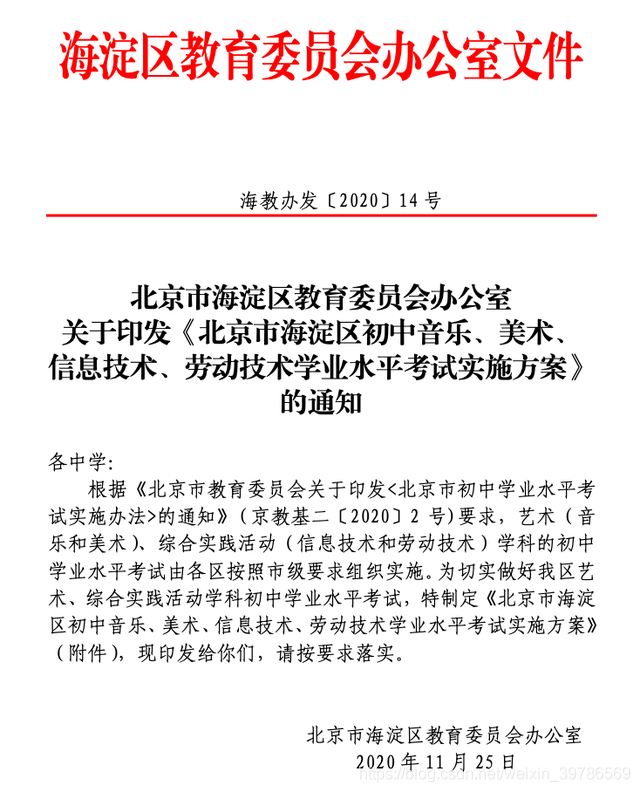 2020年11月,北京市海淀区教育委员会办公室印发《北京市海淀区初中音乐、美术、信息技术、劳动技术学业水平考试实施方案》的通知,其中规定信息技术考试中包括程序设计。