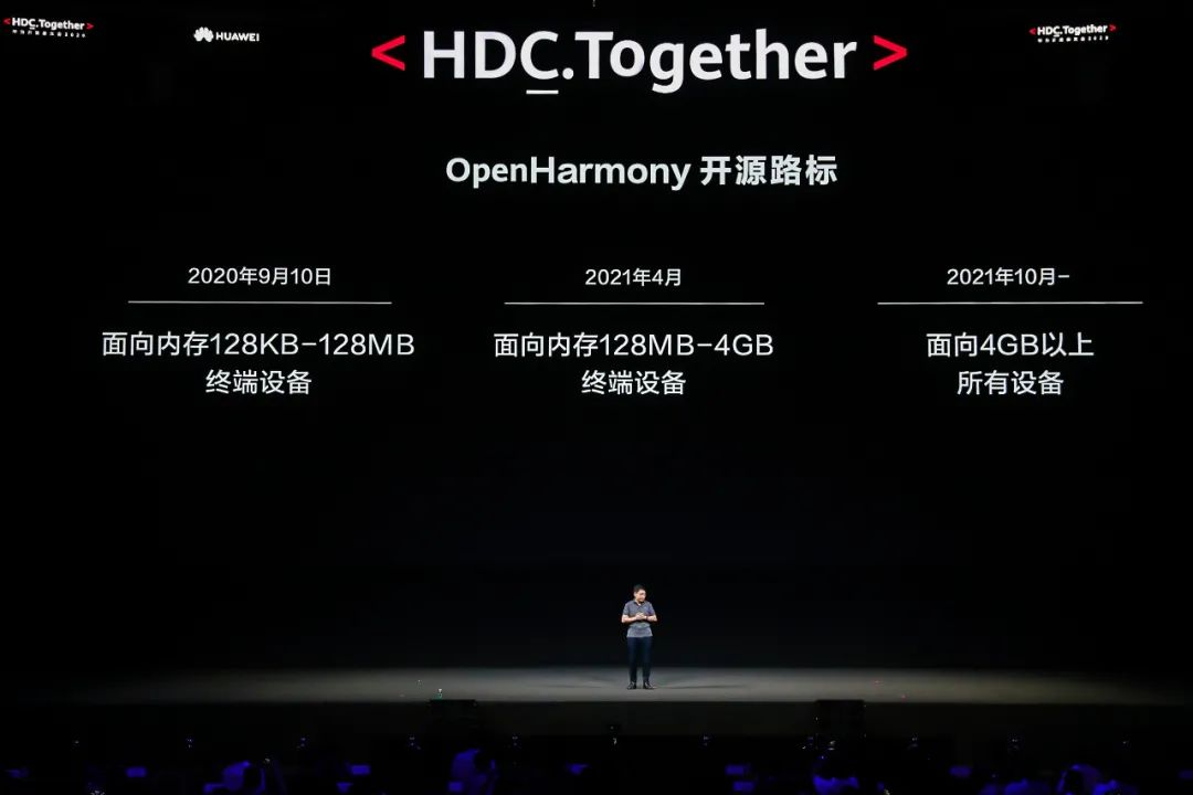 据华为常务董事、华为消费者业务 CEO 余承东表示,如果说 HarmonyOS 1.0 是面向未来的分布式操作系统,那么 HarmonyOS 2.0 就是全面使能全场景生态的操作系统。HarmonyOS 2.0 拥有跨设备、服务流转、极速直达、隐私安全等特性。此外,余承东还公布了 HarmonyOS 的开源计划:2020 年 9 月 10 日面向内存 128KB-128MB 终端设备、2021 年 4 月面向内存 128MB-4GB 终端设备、2021 年 10 月面向 4GB 以上的所有设备。