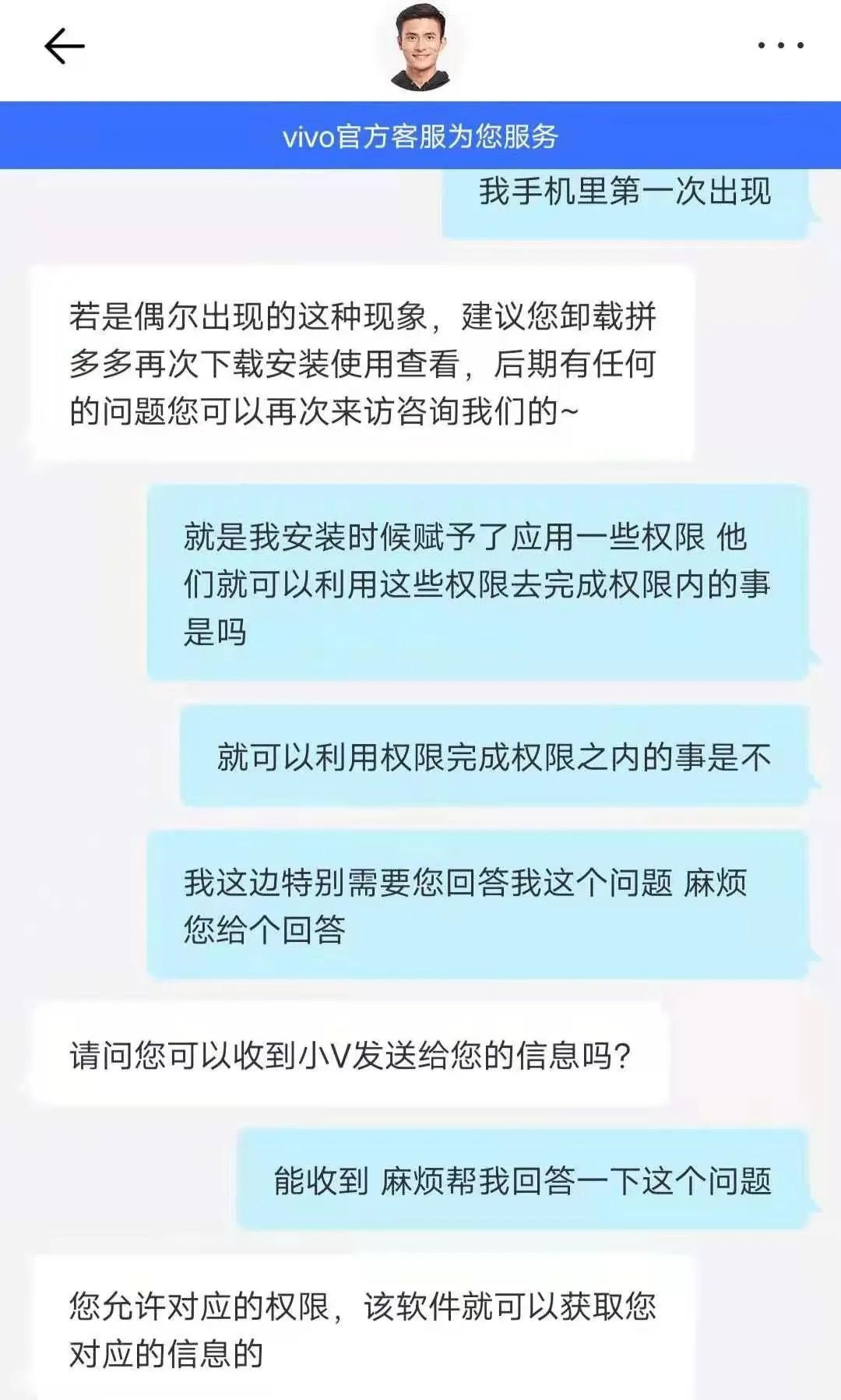 该网友就删照片一事咨询了手机厂商vivo,vivo客服回复到:“如允许对应的权限,该软件就可以获取对应的信息。”