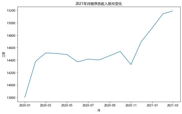 2021年3月全国程序员平均工资为15189元,较上月略有增长,工资中位数为12500元。95%的程序员工资范围在5250元到37500元之间。尽管涨幅不大,但整体呈现上升趋势。