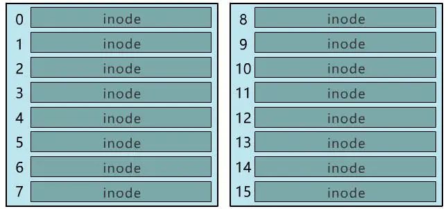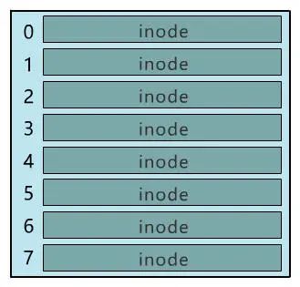如果一个 inode 为 128 字节,那么一个块就可以容纳 8 个 inode,我们可以将这些 inode 编上号。
