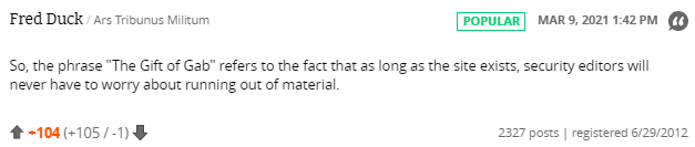 评论 1:所以网站被破坏了;数量未知的数据被窃取;Gab 管理员没有让所有身份验证 Token 失效吗?见鬼,如果我是网站管理员的话,这是我在把网站上线之前要做的第一件事。
