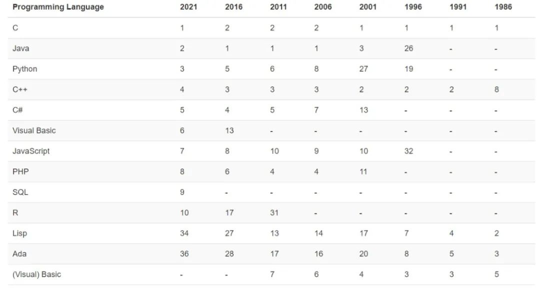 详细榜单信息可参考 TIOBE 官网:https://www.tiobe.com/tiobe-index