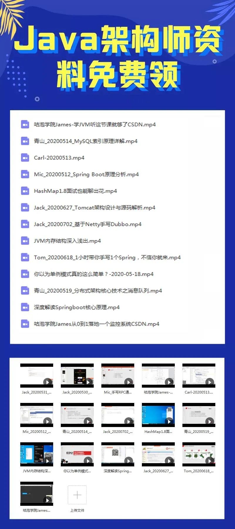 还有这些【面试题和Java架构视频】,放在我的【Java高级交流群】里,群里会有各种PDF书籍,大牛相互交流技术,捣乱和发广告的勿加。