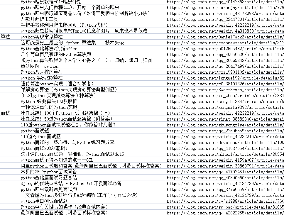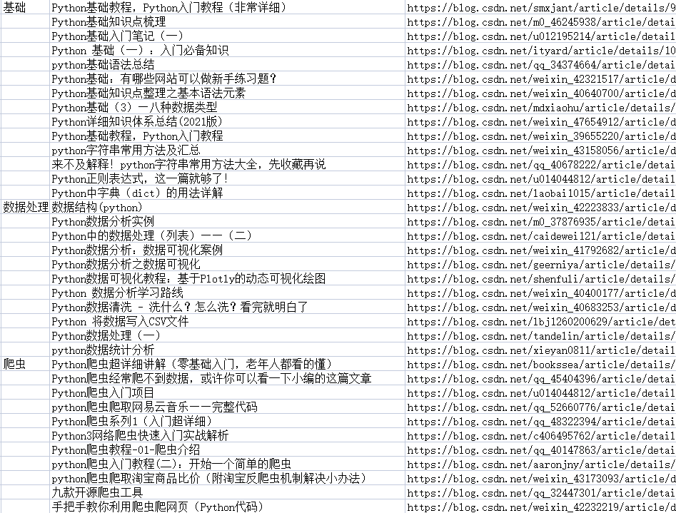 为了方便大家学习,我们发起了C站百万知识库行动,其中包含了69篇点击破万,收藏过千的【Python】最全学习资料,包含Python基础知识、数据处理、爬虫、算法、大厂面试题等知识点。无论你是刚刚接触Java、Python、前端的技术小白,还是已经有了一定基础的技术爱好者,在这里,你都可以找到你想要的资料。