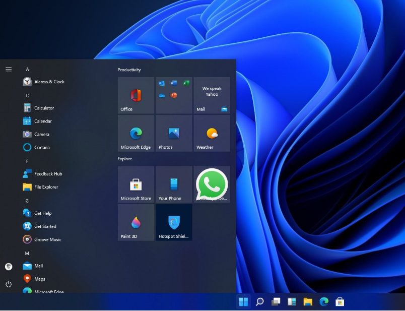 从目前网络上流出的 Windows 11 预览版镜像来看,其开始菜单和任务栏都经过了全新的 UI 设计:应用图标居中显示的任务栏、新的开始按钮和菜单、清理过的托盘区域。