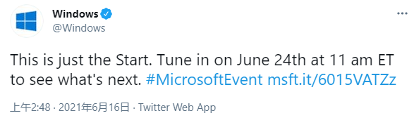 不过正如上文所说,目前泄露的 Windows 11 预览版是一个早期版本,功能尚不齐全。微软随后也对这次泄露发推回应道:“这只是开始。”下一代 Windows 的真面目还需待到 6 月 24 日由其亲自揭开。