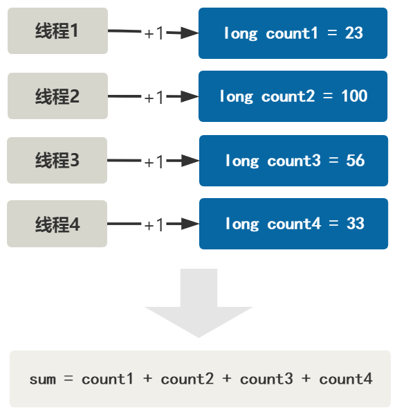 6. 最后当要获取最终的累计和时,用 base 的值,加上所有 Cell[] 数组里的 value 值,得出一个和,返回给调用方。