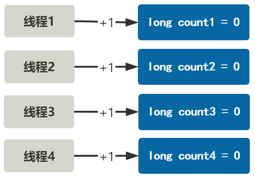 我们事先搞出多个这种 count 变量,并且用某种方式让不同线程对应到不同 count 变量上。