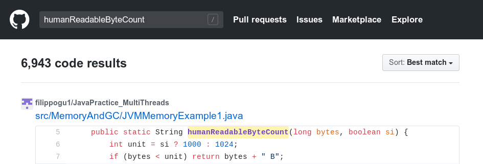 在GitHub上随便搜索一下就能找到数千个humanReadableByteCount函数: