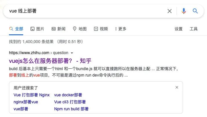 而且就算你之前没有线上部署过,只要你 Google 一下基本都能找到答案,不信你试下,可以看到以下结果,第一条就能找到部署的解决方案:
